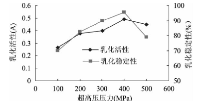 圖3 超高壓處理對鷹嘴豆分離蛋白乳化活性和乳化穩(wěn)定性的影響