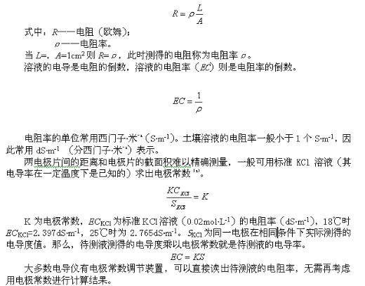 如果土壤溶液中幾種鹽類彼此間的比值比較固定時,則用電導(dǎo)率值測定總鹽分濃度的高低是相當(dāng)準(zhǔn)確的。土壤浸出液的電導(dǎo)率可用電導(dǎo)儀測定,并可直接用電導(dǎo)率的數(shù)值來表示土壤含鹽量的高低。