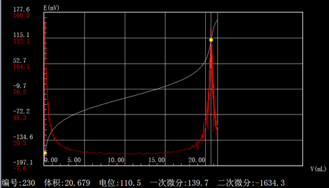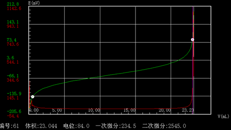 此化學(xué)反應(yīng)突躍明顯,設(shè)置在“中”mV量在100~150mV之間。#p#分頁標(biāo)題#e#